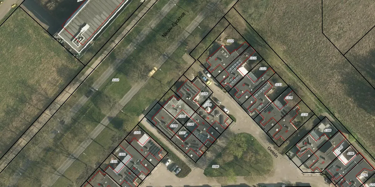 Gelein 44 is gelegen op kadastraal perceel HLN01L1106. Deze kadastrale aanduiding is uniek en wordt gebruikt door het Kadaster om eigendomsrechten en andere zakelijke rechten vast te leggen. Het perceel maakt onderdeel uit van de kadastrale gemeente Heerlen.