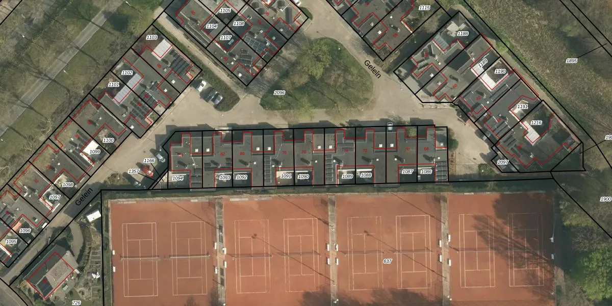 Gelein 76 is gelegen op kadastraal perceel HLN01L1090. Deze kadastrale aanduiding is uniek en wordt gebruikt door het Kadaster om eigendomsrechten en andere zakelijke rechten vast te leggen. Het perceel maakt onderdeel uit van de kadastrale gemeente Heerlen.
