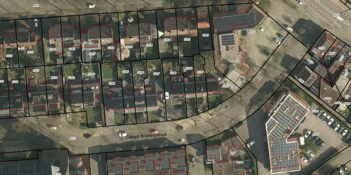 Gerard Bruningstraat 21 is gelegen op kadastraal perceel HLN01G5288. Deze kadastrale aanduiding is uniek en wordt gebruikt door het Kadaster om eigendomsrechten en andere zakelijke rechten vast te leggen. Het perceel maakt onderdeel uit van de kadastrale gemeente Heerlen.