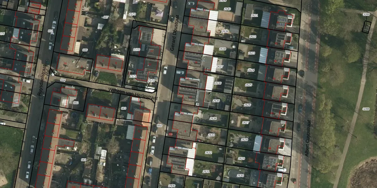 Gerard Doustraat 12 is gelegen op kadastraal perceel HLN01M2635. Deze kadastrale aanduiding is uniek en wordt gebruikt door het Kadaster om eigendomsrechten en andere zakelijke rechten vast te leggen. Het perceel maakt onderdeel uit van de kadastrale gemeente Heerlen.