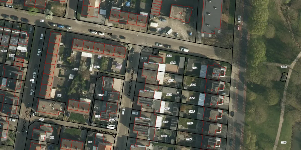 Gerard Doustraat 20 is gelegen op kadastraal perceel HLN01M2639. Deze kadastrale aanduiding is uniek en wordt gebruikt door het Kadaster om eigendomsrechten en andere zakelijke rechten vast te leggen. Het perceel maakt onderdeel uit van de kadastrale gemeente Heerlen.