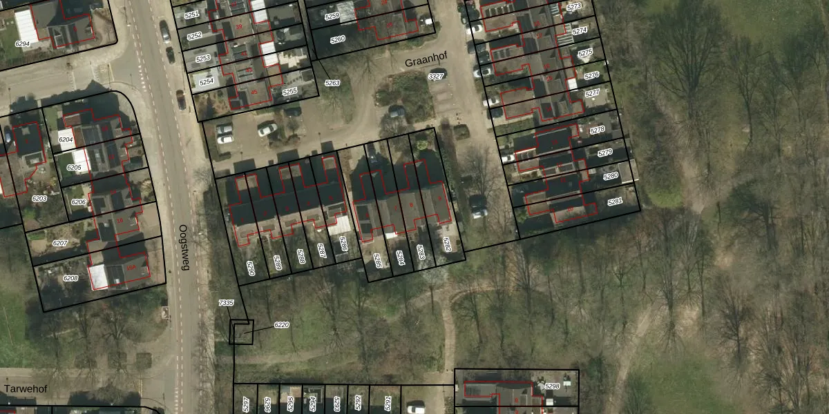 Het perceel waarop Graanhof 8 staat heeft een oppervlakte van 177 m². Dit is een middelgroot perceel. De perceeloppervlakte wordt geregistreerd door het Kadaster. Gedetailleerde informatie over de maten van dit perceel kunt u vinden in het rapport Kadastrale kaart met maatvoering van Graanhof 8.