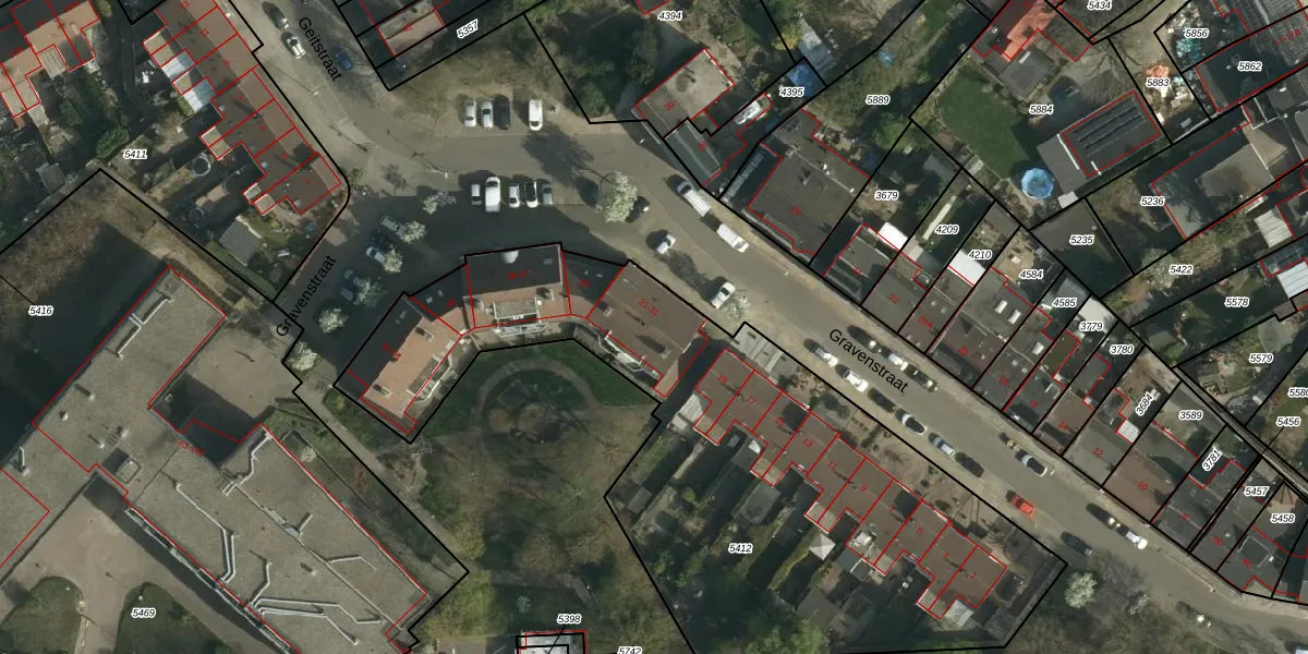 Het perceel waarop Gravenstraat 23 staat heeft een oppervlakte van 3060 m². Dit is een zeer groot perceel. De perceeloppervlakte wordt geregistreerd door het Kadaster. Gedetailleerde informatie over de maten van dit perceel kunt u vinden in het rapport Kadastrale kaart met maatvoering van Gravenstraat 23.