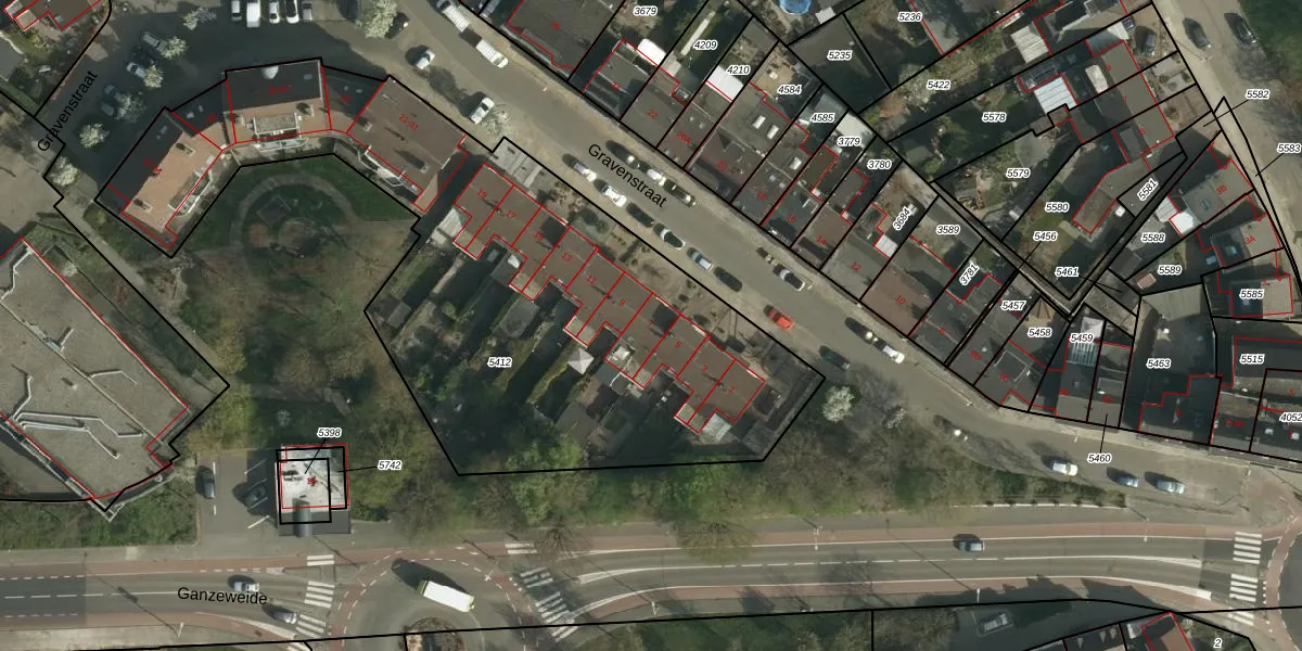 Het perceel waarop Gravenstraat 7 staat heeft een oppervlakte van 3060 m². Dit is een zeer groot perceel. De perceeloppervlakte wordt geregistreerd door het Kadaster. Gedetailleerde informatie over de maten van dit perceel kunt u vinden in het rapport Kadastrale kaart met maatvoering van Gravenstraat 7.