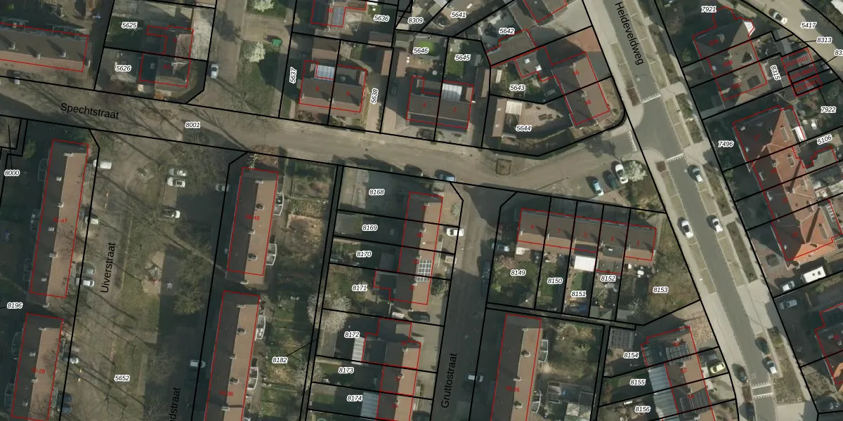 Gebruik de zoekbalk of klik op een perceel voor informatie over de adressen binnen dit perceel.