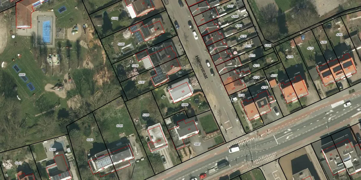 Hamerstraat 52 is gelegen op kadastraal perceel HLN01E5986. Deze kadastrale aanduiding is uniek en wordt gebruikt door het Kadaster om eigendomsrechten en andere zakelijke rechten vast te leggen. Het perceel maakt onderdeel uit van de kadastrale gemeente Heerlen.