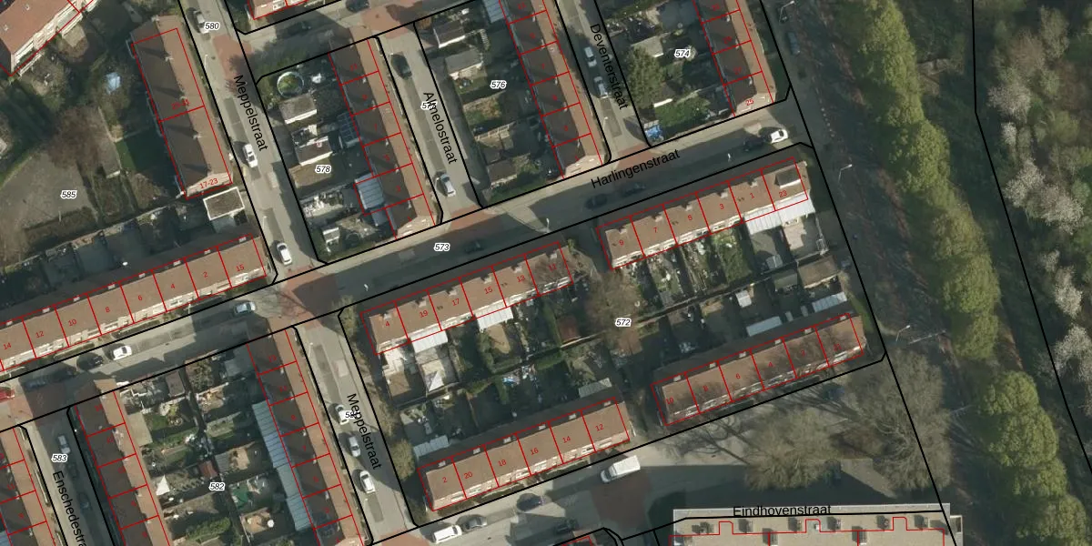 Het perceel waarop Harlingenstraat 11 staat heeft een oppervlakte van 3900 m². Dit is een zeer groot perceel. De perceeloppervlakte wordt geregistreerd door het Kadaster. Gedetailleerde informatie over de maten van dit perceel kunt u vinden in het rapport Kadastrale kaart met maatvoering van Harlingenstraat 11.
