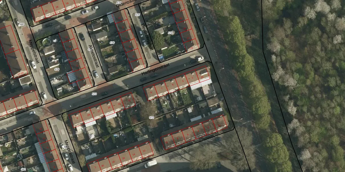 Het perceel waarop Harlingenstraat 5 staat heeft een oppervlakte van 3900 m². Dit is een zeer groot perceel. De perceeloppervlakte wordt geregistreerd door het Kadaster. Gedetailleerde informatie over de maten van dit perceel kunt u vinden in het rapport Kadastrale kaart met maatvoering van Harlingenstraat 5.