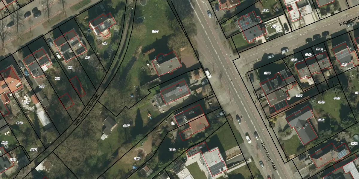 Gebruik de zoekbalk of klik op een perceel voor informatie over de adressen binnen dit perceel.