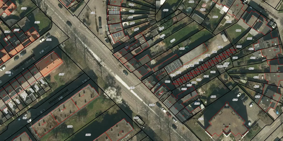 Het perceel waarop Heesbergstraat 65 staat heeft een oppervlakte van 530 m². Dit is een groot perceel. De perceeloppervlakte wordt geregistreerd door het Kadaster. Gedetailleerde informatie over de maten van dit perceel kunt u vinden in het rapport Kadastrale kaart met maatvoering van Heesbergstraat 65.