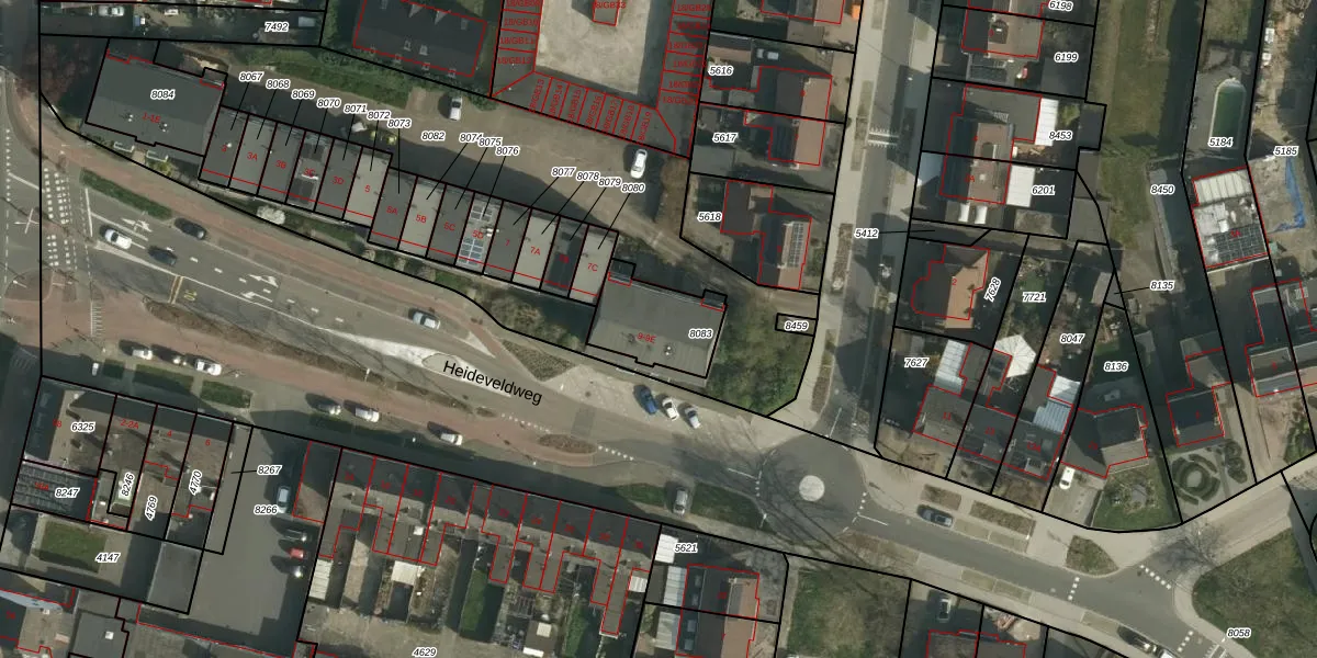 Heideveldweg 9-E is gelegen op kadastraal perceel HLN01B8083. Deze kadastrale aanduiding is uniek en wordt gebruikt door het Kadaster om eigendomsrechten en andere zakelijke rechten vast te leggen. Het perceel maakt onderdeel uit van de kadastrale gemeente Heerlen.