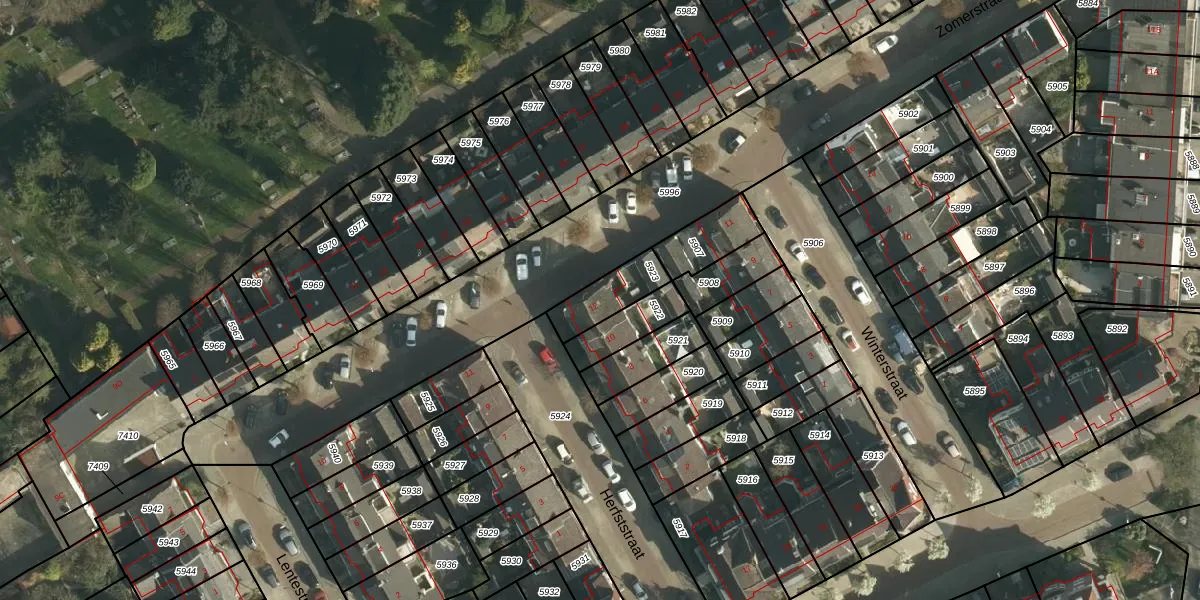 Gebruik de zoekbalk of klik op een perceel voor informatie over de adressen binnen dit perceel.