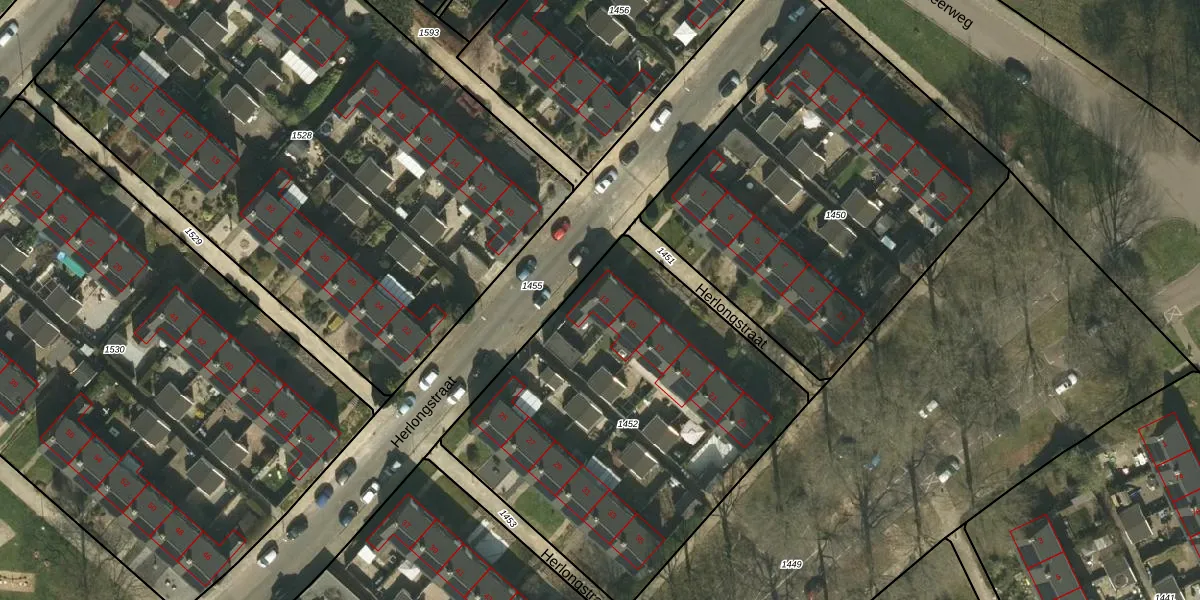 Het perceel waarop Herlongstraat 13 staat heeft een oppervlakte van 1963 m². Dit is een zeer groot perceel. De perceeloppervlakte wordt geregistreerd door het Kadaster. Gedetailleerde informatie over de maten van dit perceel kunt u vinden in het rapport Kadastrale kaart met maatvoering van Herlongstraat 13.