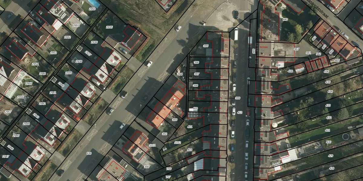 Het adres is gelegen op perceel 394 in de sectie M en de kadastrale gemeente Heerlen. De kadastrale aanduiding is aldus HLN01-M-394. Het perceel is kleiner dan gemiddeld in Heerlen. Het perceel is 320 m² groot, terwijl het gemiddelde ligt op 1399,59 m². Het kleinste perceel in de kadastrale gemeente is 0 m² groot. De grootste perceeloppervlakte is 86,1 ha. Op het perceel zijn 3 adressen aanwezig. De laatste wijziging in het de Basisregistratie Kadaster (BRK) was op 11-06-2009.