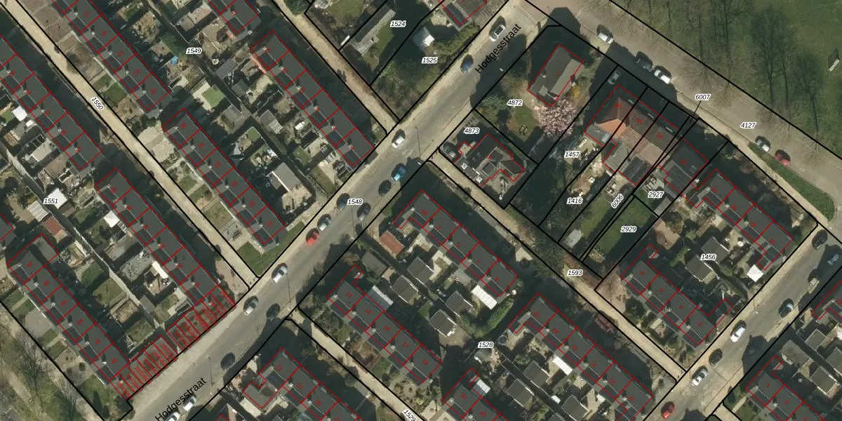 Het perceel waarop Hodgesstraat 1-B staat heeft een oppervlakte van 3730 m². Dit is een zeer groot perceel. De perceeloppervlakte wordt geregistreerd door het Kadaster. Gedetailleerde informatie over de maten van dit perceel kunt u vinden in het rapport Kadastrale kaart met maatvoering van Hodgesstraat 1-B.