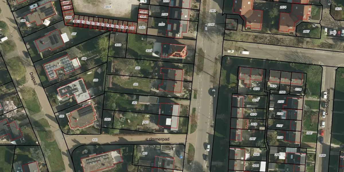 Gebruik de zoekbalk of klik op een perceel voor informatie over de adressen binnen dit perceel.
