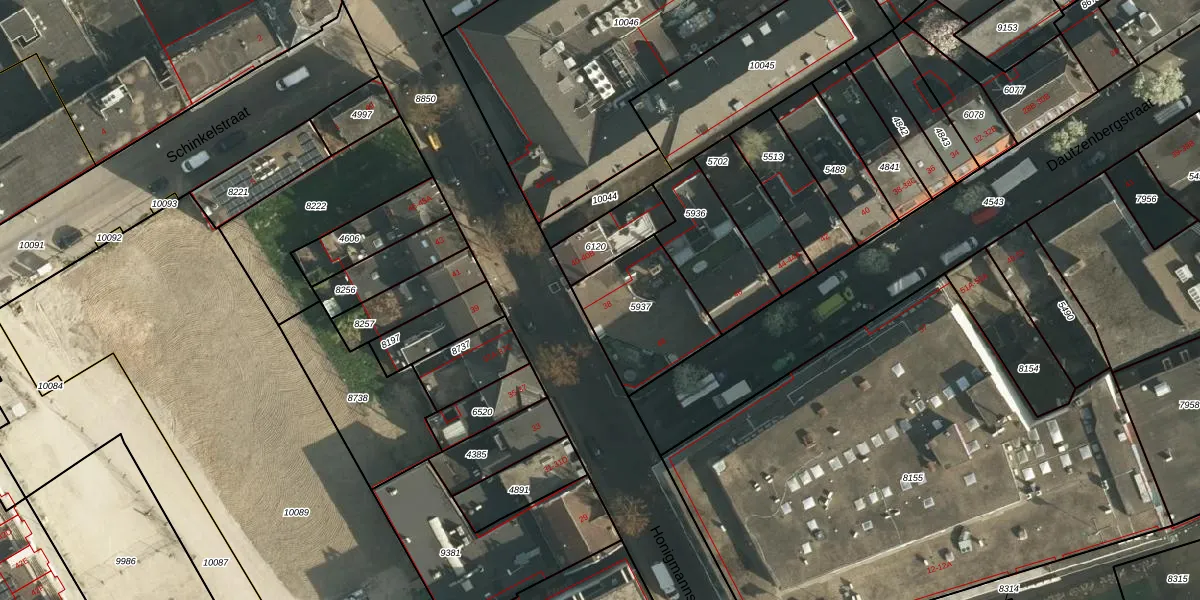 Het perceel waarop Honigmannstraat 38 staat heeft een oppervlakte van 358 m². Dit is een groot perceel. De perceeloppervlakte wordt geregistreerd door het Kadaster. Gedetailleerde informatie over de maten van dit perceel kunt u vinden in het rapport Kadastrale kaart met maatvoering van Honigmannstraat 38.