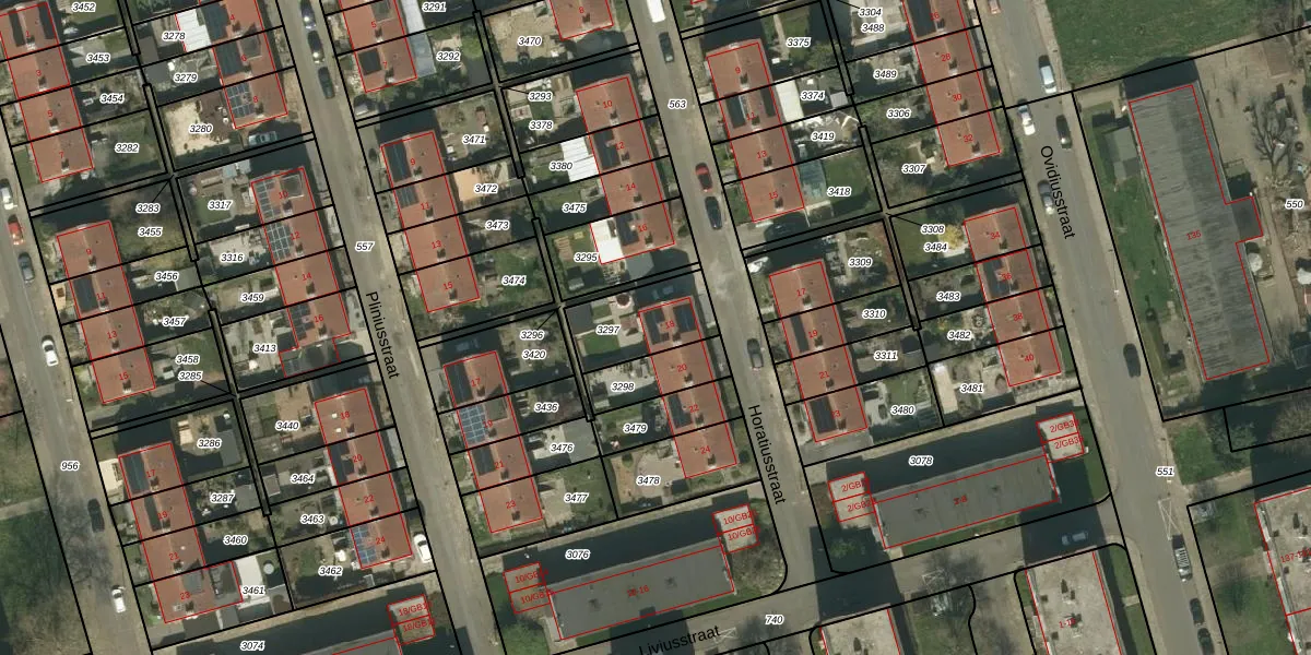 Het perceel waarop Horatiusstraat 18 staat heeft een oppervlakte van 230 m². Dit is een middelgroot perceel. De perceeloppervlakte wordt geregistreerd door het Kadaster. Gedetailleerde informatie over de maten van dit perceel kunt u vinden in het rapport Kadastrale kaart met maatvoering van Horatiusstraat 18.