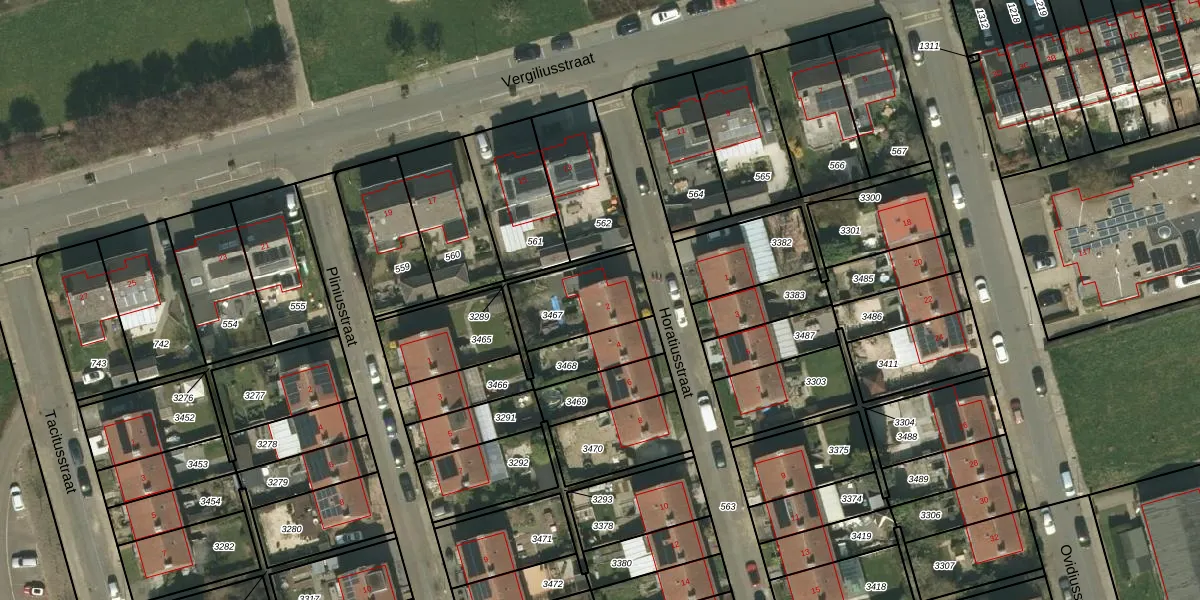 Gebruik de zoekbalk of klik op een perceel voor informatie over de adressen binnen dit perceel.