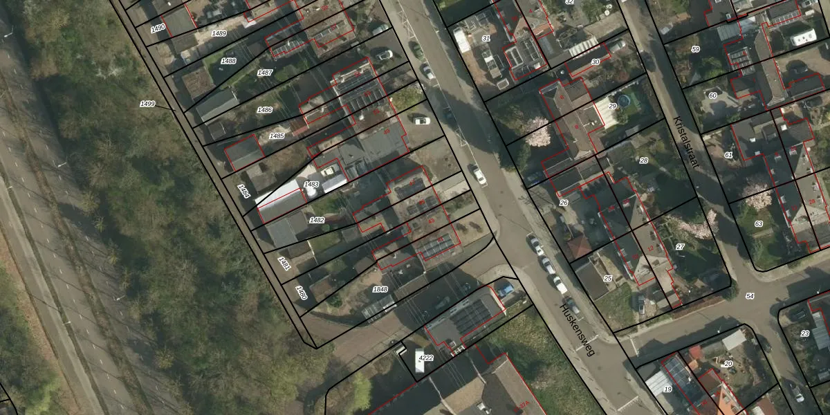 Huskensweg 45 is gelegen op kadastraal perceel HLN01R1481. Deze kadastrale aanduiding is uniek en wordt gebruikt door het Kadaster om eigendomsrechten en andere zakelijke rechten vast te leggen. Het perceel maakt onderdeel uit van de kadastrale gemeente Heerlen.