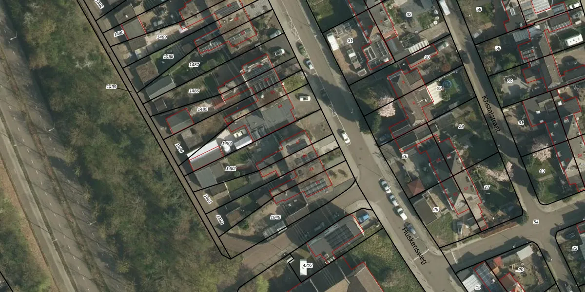 Huskensweg 47 is gelegen op kadastraal perceel HLN01R1482. Deze kadastrale aanduiding is uniek en wordt gebruikt door het Kadaster om eigendomsrechten en andere zakelijke rechten vast te leggen. Het perceel maakt onderdeel uit van de kadastrale gemeente Heerlen.
