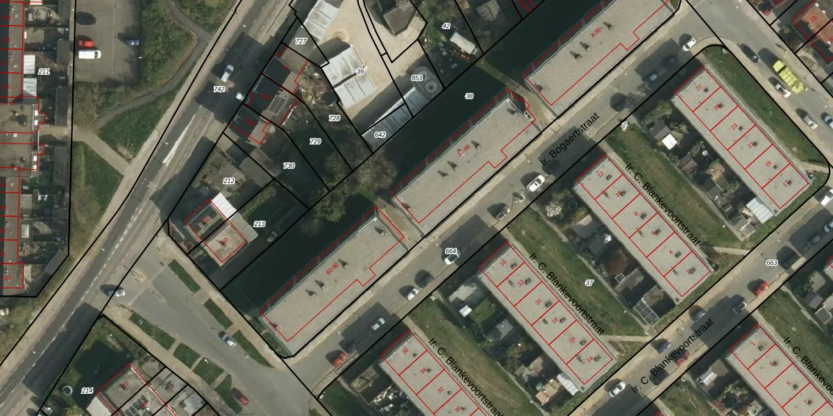 Het perceel waarop Ir. Bogaertstraat 32-GB39 staat heeft een oppervlakte van 3050 m². Dit is een zeer groot perceel. De perceeloppervlakte wordt geregistreerd door het Kadaster. Gedetailleerde informatie over de maten van dit perceel kunt u vinden in het rapport Kadastrale kaart met maatvoering van Ir. Bogaertstraat 32-GB39.