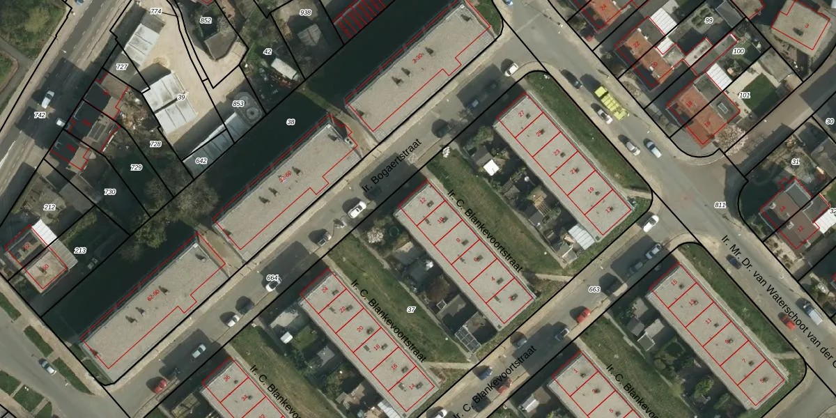 Het perceel waarop Ir. C. Blankevoortstraat 12 staat heeft een oppervlakte van 5650 m². Dit is een zeer groot perceel. De perceeloppervlakte wordt geregistreerd door het Kadaster. Gedetailleerde informatie over de maten van dit perceel kunt u vinden in het rapport Kadastrale kaart met maatvoering van Ir. C. Blankevoortstraat 12.