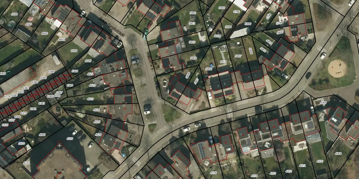 Joke Smitstraat 19 is gelegen op kadastraal perceel HLN01K5808. Deze kadastrale aanduiding is uniek en wordt gebruikt door het Kadaster om eigendomsrechten en andere zakelijke rechten vast te leggen. Het perceel maakt onderdeel uit van de kadastrale gemeente Heerlen.