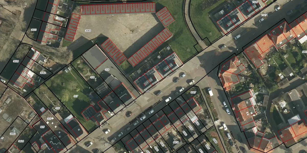 Joost van Vondelstraat 21 is gelegen op kadastraal perceel HLN01M3083. Deze kadastrale aanduiding is uniek en wordt gebruikt door het Kadaster om eigendomsrechten en andere zakelijke rechten vast te leggen. Het perceel maakt onderdeel uit van de kadastrale gemeente Heerlen.