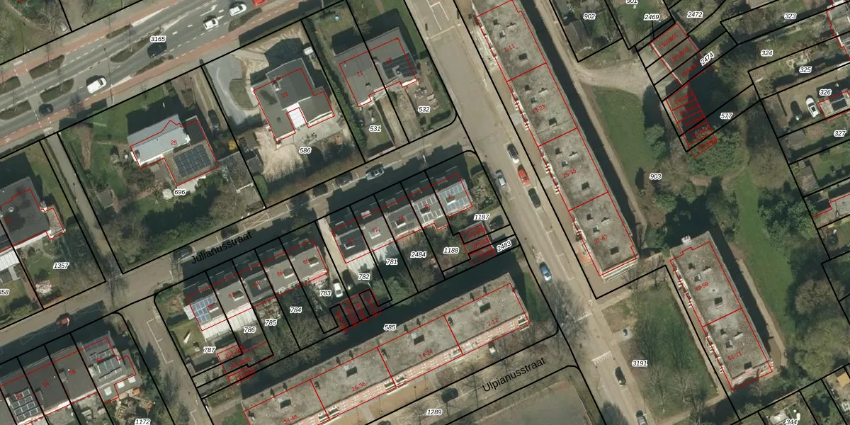Het perceel waarop Julianusstraat 76 staat heeft een oppervlakte van 191 m². Dit is een middelgroot perceel. De perceeloppervlakte wordt geregistreerd door het Kadaster. Gedetailleerde informatie over de maten van dit perceel kunt u vinden in het rapport Kadastrale kaart met maatvoering van Julianusstraat 76.