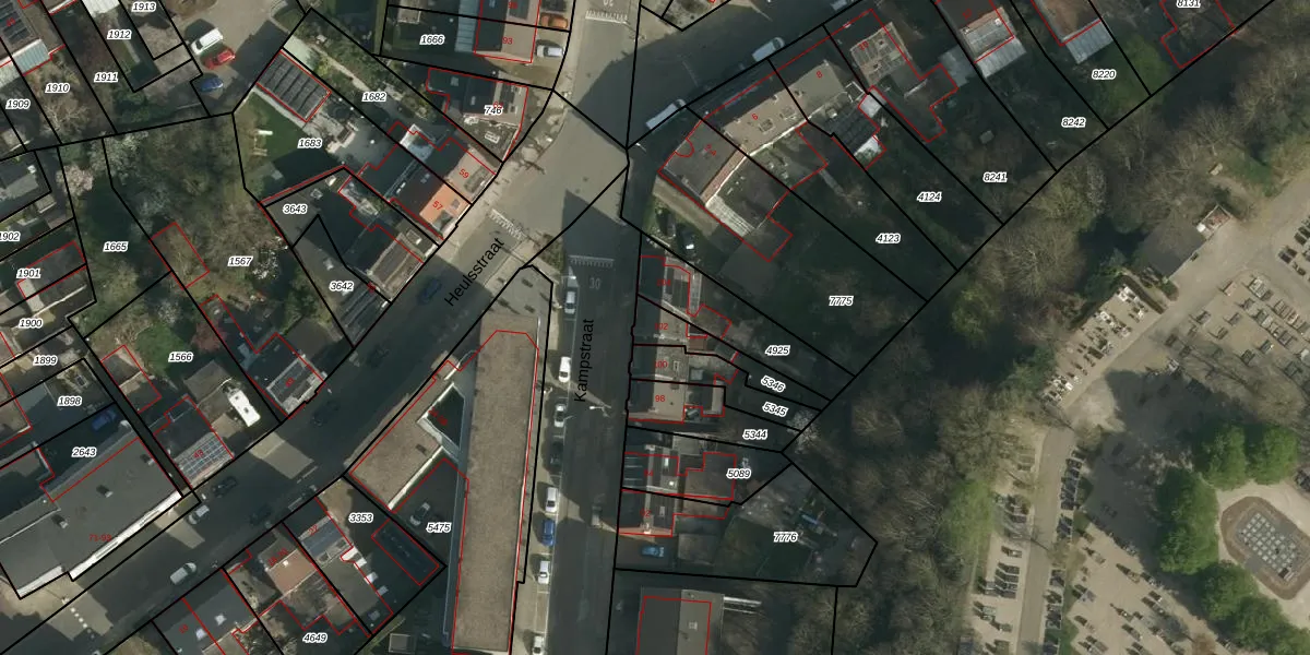 Kampstraat 102 is gelegen op kadastraal perceel HLN01B5346. Deze kadastrale aanduiding is uniek en wordt gebruikt door het Kadaster om eigendomsrechten en andere zakelijke rechten vast te leggen. Het perceel maakt onderdeel uit van de kadastrale gemeente Heerlen.