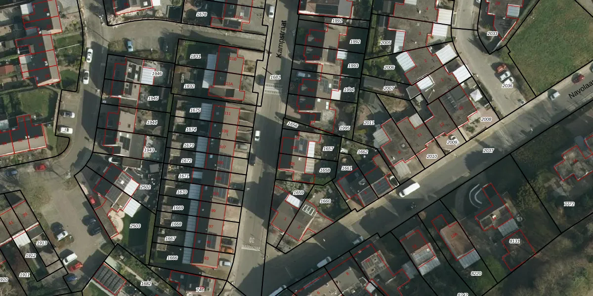 Kampstraat 108 is gelegen op kadastraal perceel HLN01O1657. Deze kadastrale aanduiding is uniek en wordt gebruikt door het Kadaster om eigendomsrechten en andere zakelijke rechten vast te leggen. Het perceel maakt onderdeel uit van de kadastrale gemeente Heerlen.