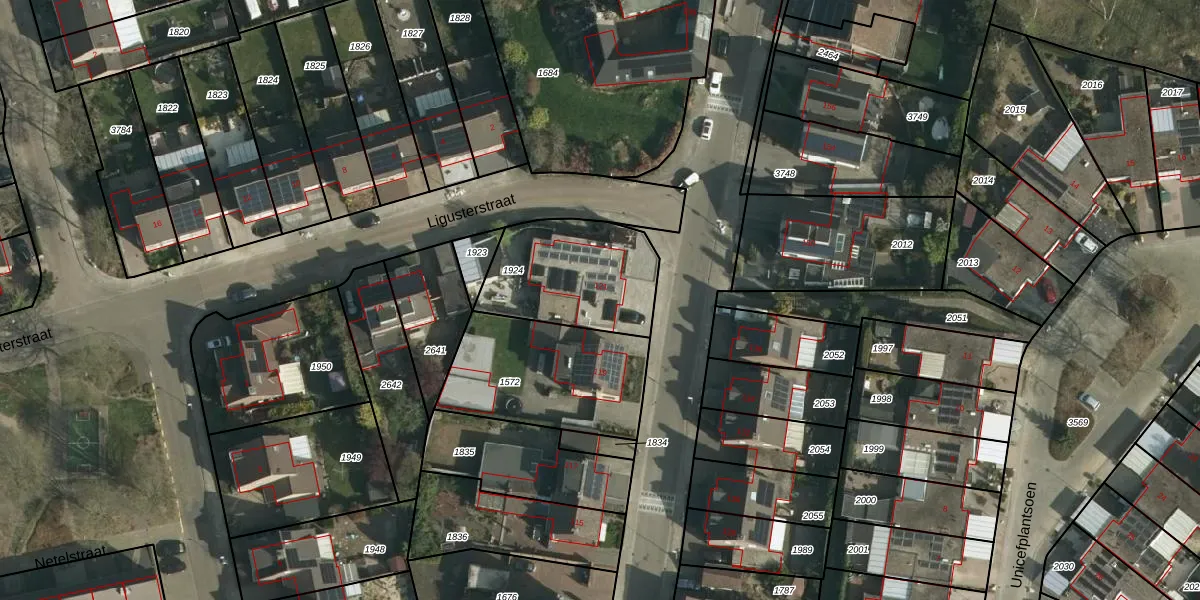 Gebruik de zoekbalk of klik op een perceel voor informatie over de adressen binnen dit perceel.