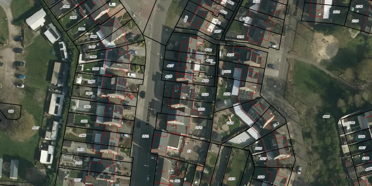Kampstraat 180 is gelegen op kadastraal perceel HLN01O2518. Deze kadastrale aanduiding is uniek en wordt gebruikt door het Kadaster om eigendomsrechten en andere zakelijke rechten vast te leggen. Het perceel maakt onderdeel uit van de kadastrale gemeente Heerlen.