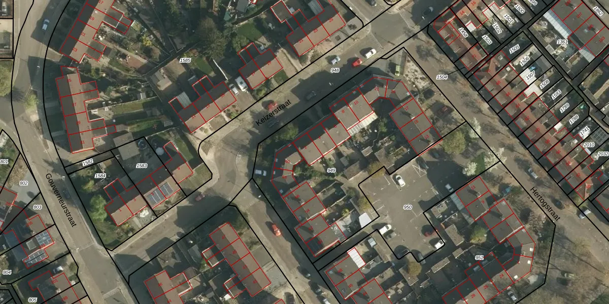 Keizerstraat 2 is gelegen op kadastraal perceel HLN01L949. Deze kadastrale aanduiding is uniek en wordt gebruikt door het Kadaster om eigendomsrechten en andere zakelijke rechten vast te leggen. Het perceel maakt onderdeel uit van de kadastrale gemeente Heerlen.