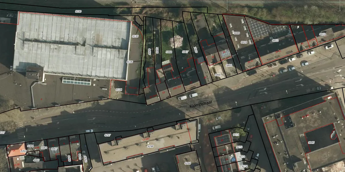 Het perceel waarop Klompstraat 25-A staat heeft een oppervlakte van 365 m². Dit is een groot perceel. De perceeloppervlakte wordt geregistreerd door het Kadaster. Gedetailleerde informatie over de maten van dit perceel kunt u vinden in het rapport Kadastrale kaart met maatvoering van Klompstraat 25-A.