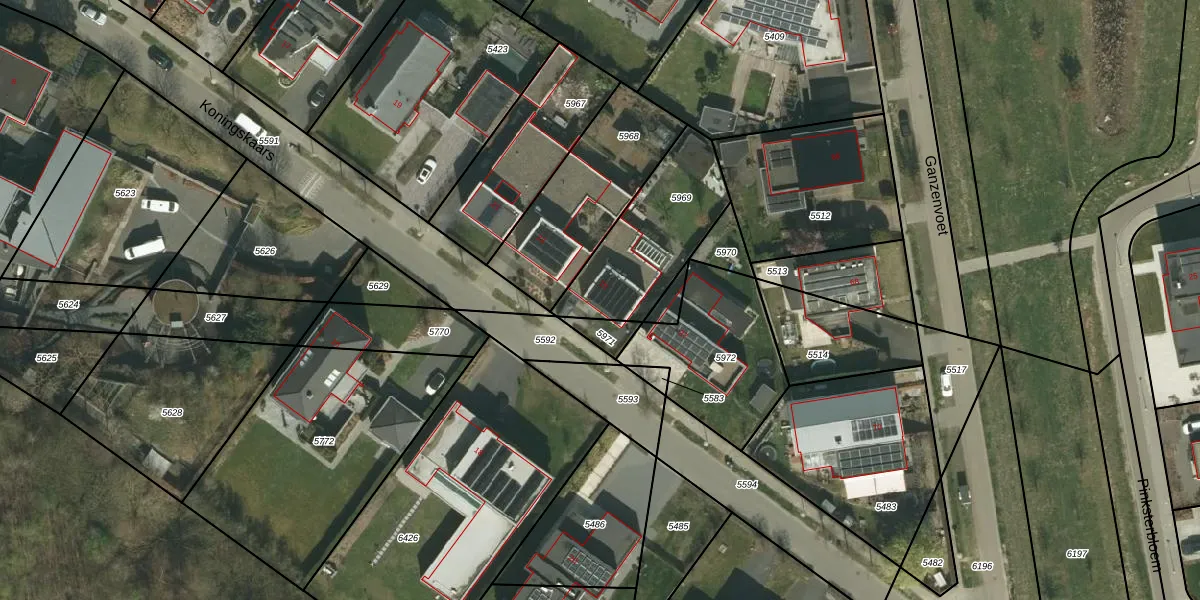 Het perceel waarop Koningskaars 25 staat heeft een oppervlakte van 450 m². Dit is een groot perceel. De perceeloppervlakte wordt geregistreerd door het Kadaster. Gedetailleerde informatie over de maten van dit perceel kunt u vinden in het rapport Kadastrale kaart met maatvoering van Koningskaars 25.