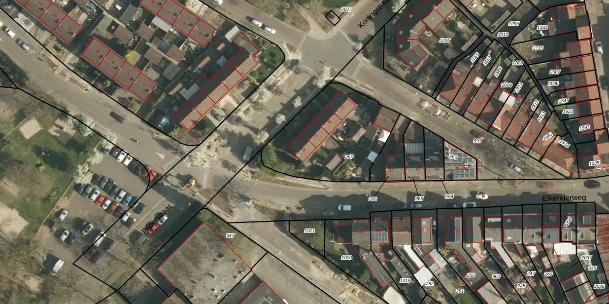Het perceel waarop Koningstraat 63 staat heeft een oppervlakte van 950 m². Dit is een groot perceel. De perceeloppervlakte wordt geregistreerd door het Kadaster. Gedetailleerde informatie over de maten van dit perceel kunt u vinden in het rapport Kadastrale kaart met maatvoering van Koningstraat 63.
