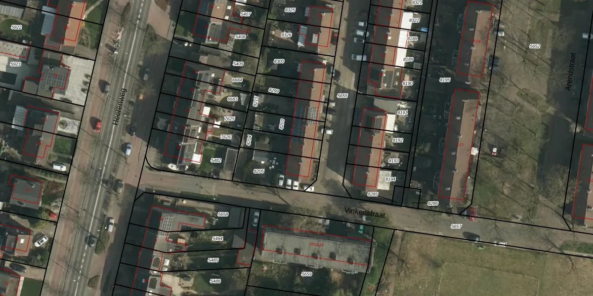 Gebruik de zoekbalk of klik op een perceel voor informatie over de adressen binnen dit perceel.