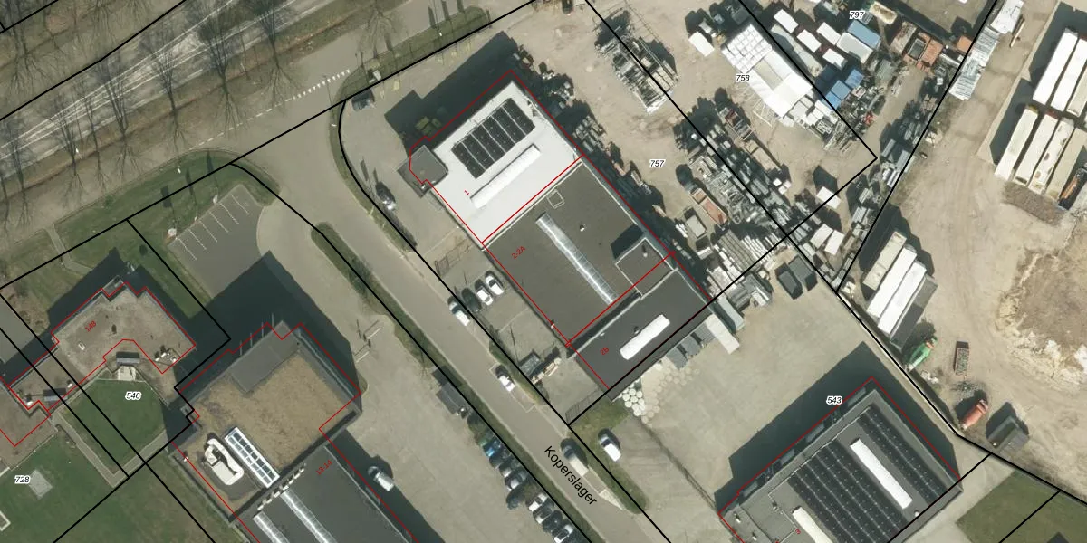 Het perceel waarop Koperslager 2-A staat heeft een oppervlakte van 3647 m². Dit is een zeer groot perceel. De perceeloppervlakte wordt geregistreerd door het Kadaster. Gedetailleerde informatie over de maten van dit perceel kunt u vinden in het rapport Kadastrale kaart met maatvoering van Koperslager 2-A.
