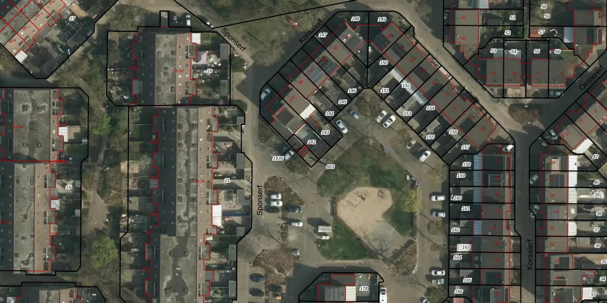 Het perceel waarop Koraalerf 103-TR01 staat heeft een oppervlakte van 25 m². Dit is een klein perceel. De perceeloppervlakte wordt geregistreerd door het Kadaster. Gedetailleerde informatie over de maten van dit perceel kunt u vinden in het rapport Kadastrale kaart met maatvoering van Koraalerf 103-TR01.