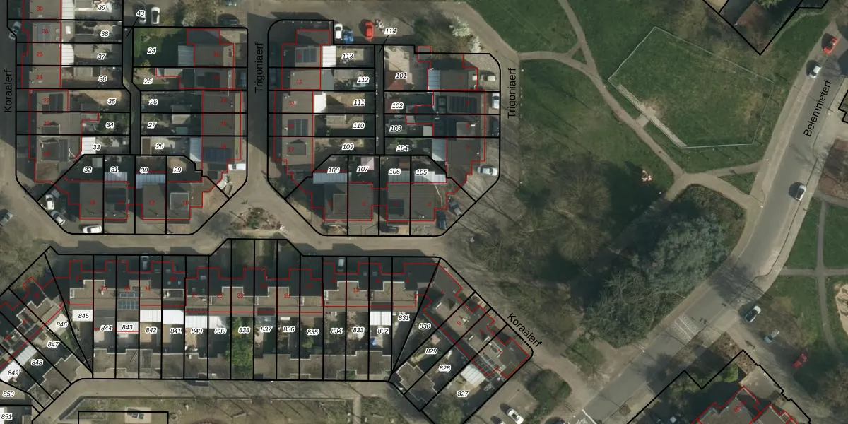 Gebruik de zoekbalk of klik op een perceel voor informatie over de adressen binnen dit perceel.