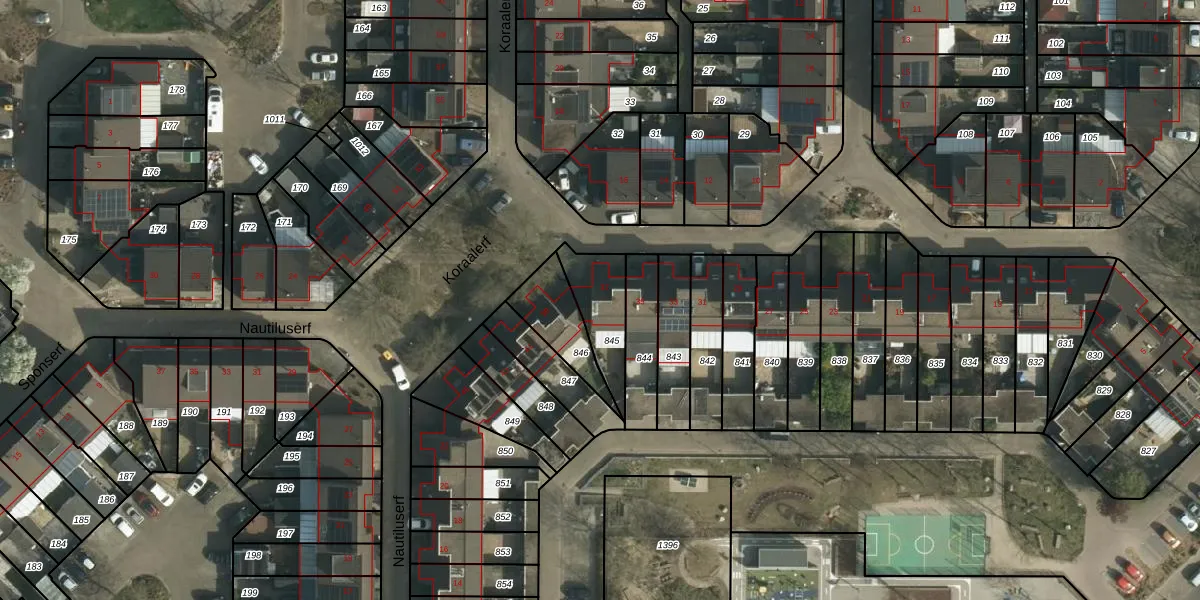 Het perceel waarop Koraalerf 37 staat heeft een oppervlakte van 173 m². Dit is een middelgroot perceel. De perceeloppervlakte wordt geregistreerd door het Kadaster. Gedetailleerde informatie over de maten van dit perceel kunt u vinden in het rapport Kadastrale kaart met maatvoering van Koraalerf 37.