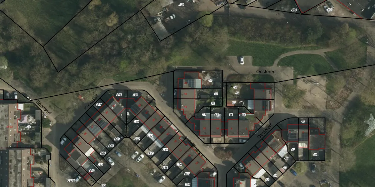 Gebruik de zoekbalk of klik op een perceel voor informatie over de adressen binnen dit perceel.