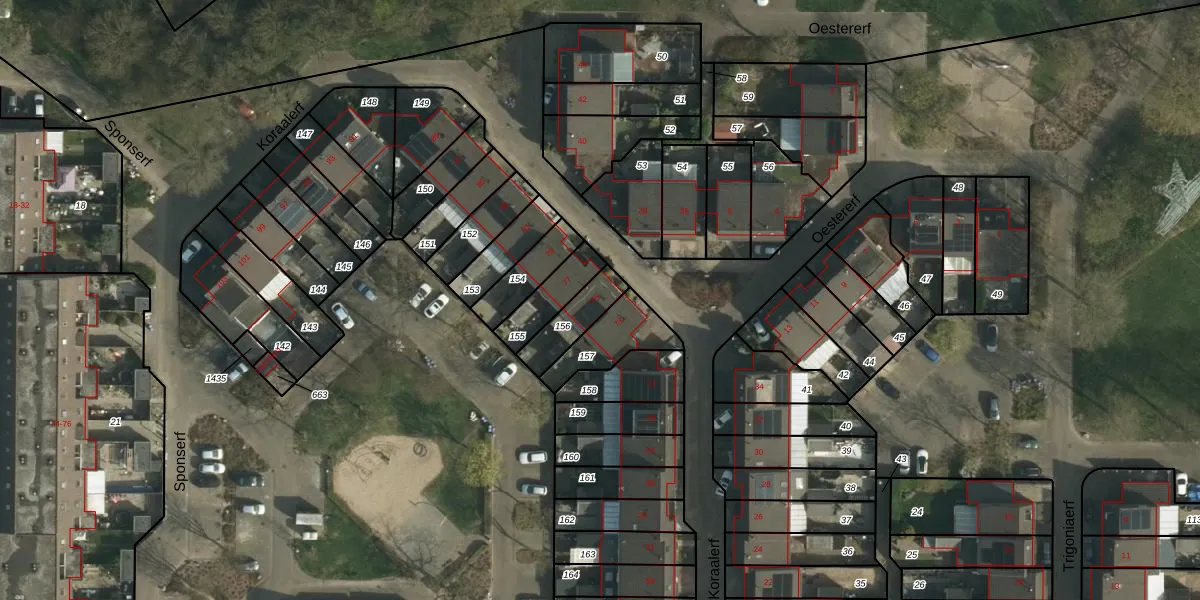 Het perceel waarop Koraalerf 75 staat heeft een oppervlakte van 116 m². Dit is een middelgroot perceel. De perceeloppervlakte wordt geregistreerd door het Kadaster. Gedetailleerde informatie over de maten van dit perceel kunt u vinden in het rapport Kadastrale kaart met maatvoering van Koraalerf 75.