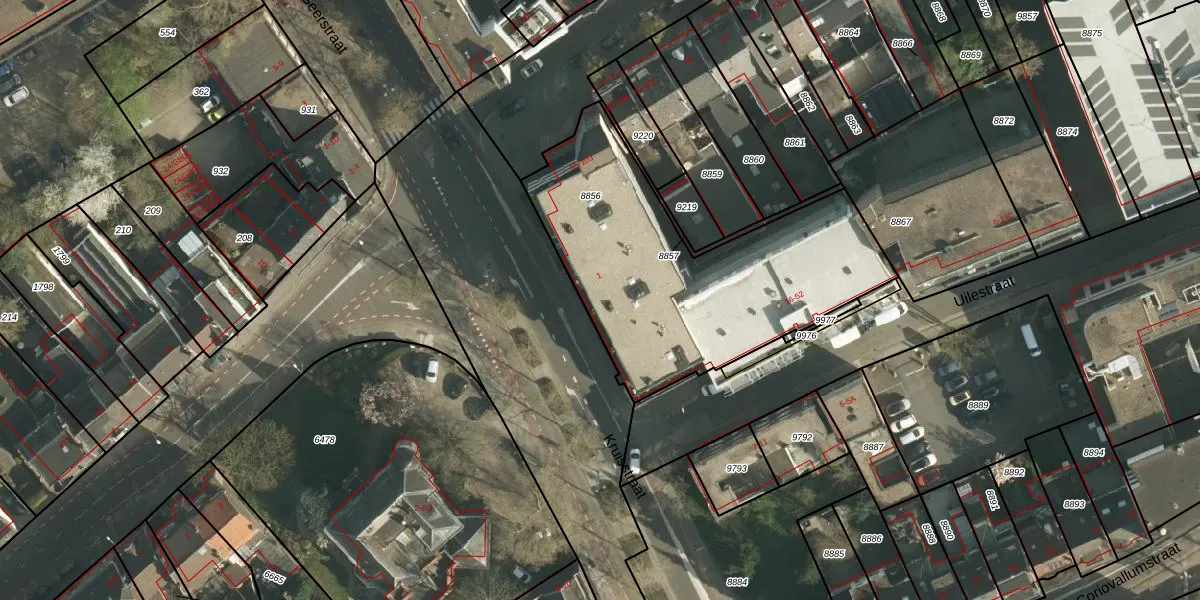 Kruisstraat 1 is gelegen op kadastraal perceel HLN01D8856. Deze kadastrale aanduiding is uniek en wordt gebruikt door het Kadaster om eigendomsrechten en andere zakelijke rechten vast te leggen. Het perceel maakt onderdeel uit van de kadastrale gemeente Heerlen.