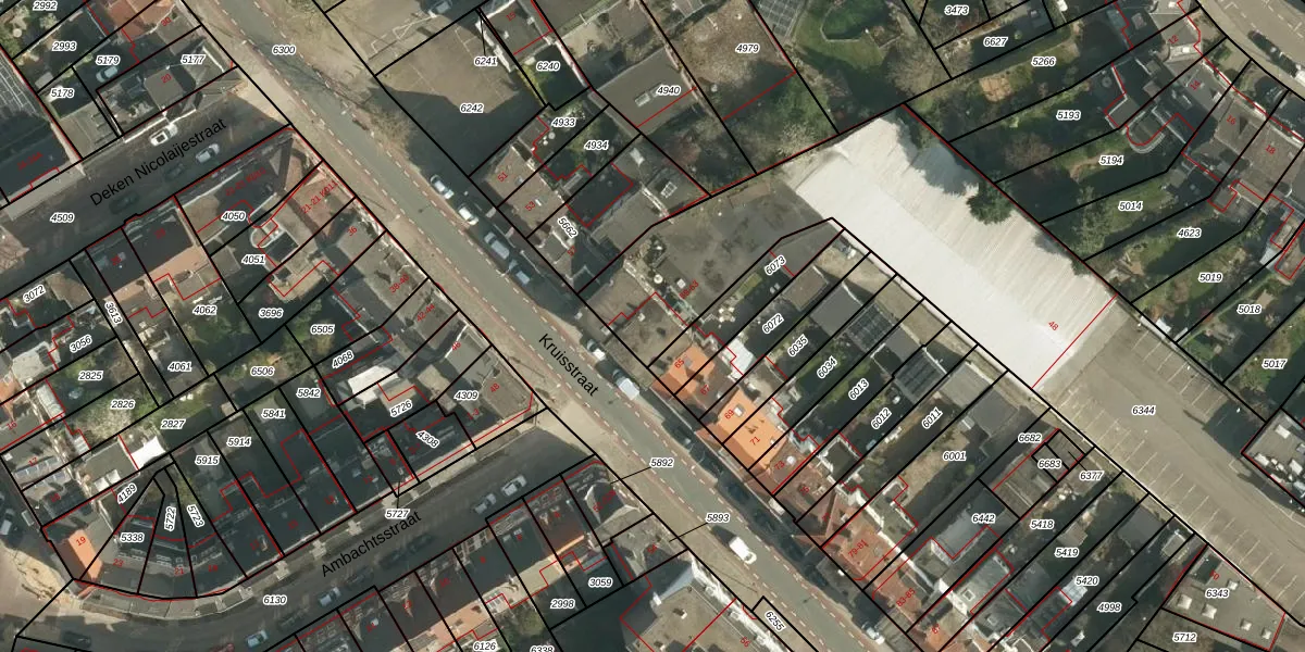Het perceel waarop Kruisstraat 59 staat heeft een oppervlakte van 2560 m². Dit is een zeer groot perceel. De perceeloppervlakte wordt geregistreerd door het Kadaster. Gedetailleerde informatie over de maten van dit perceel kunt u vinden in het rapport Kadastrale kaart met maatvoering van Kruisstraat 59.