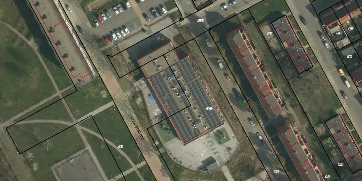 Het perceel waarop Laurierstraat 72 staat heeft een oppervlakte van 5,0 ha. Dit is een zeer groot perceel. De perceeloppervlakte wordt geregistreerd door het Kadaster. Gedetailleerde informatie over de maten van dit perceel kunt u vinden in het rapport Kadastrale kaart met maatvoering van Laurierstraat 72.