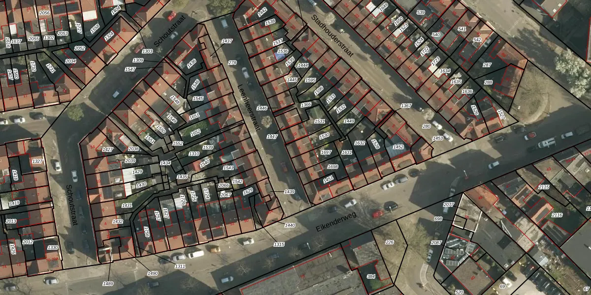Het perceel waarop Leenheerstraat 8 staat heeft een oppervlakte van 93 m². Dit is een klein perceel. De perceeloppervlakte wordt geregistreerd door het Kadaster. Gedetailleerde informatie over de maten van dit perceel kunt u vinden in het rapport Kadastrale kaart met maatvoering van Leenheerstraat 8.