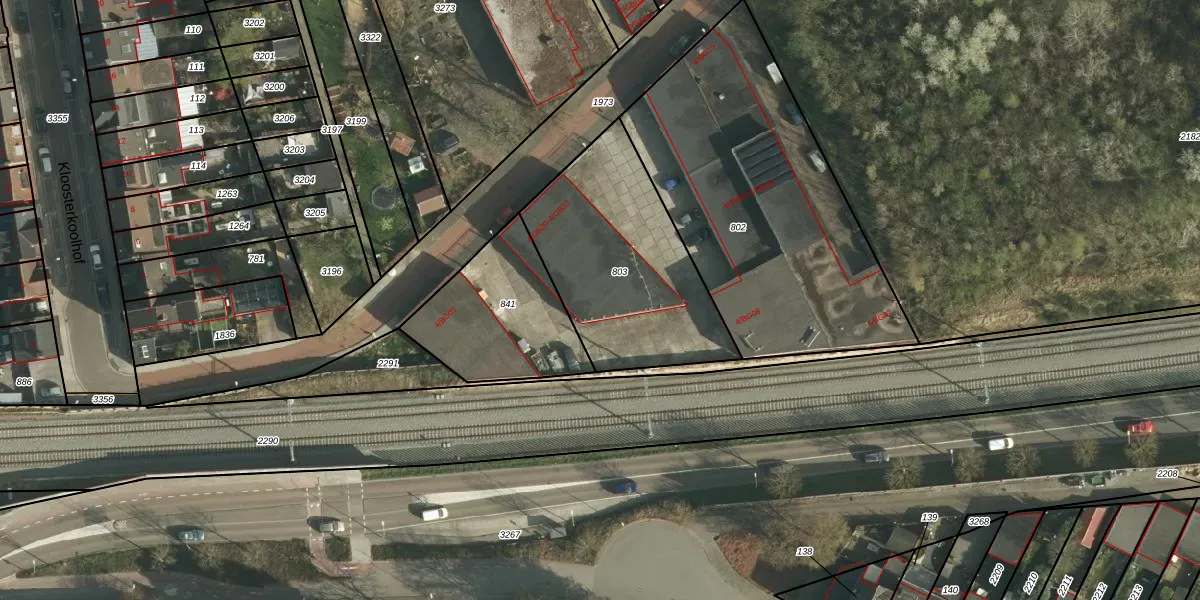 Het perceel waarop het adres ligt is HLN01-M-803. De afkorting 'HLN01' staat voor kadastrale gemeente Heerlen. Het perceel is kleiner dan gemiddeld in Heerlen. Het perceel is 831 m² groot, terwijl het gemiddelde ligt op 1400,62 m². Het kleinste perceel in de kadastrale gemeente is 0 m² groot. De grootste perceeloppervlakte is 86,1 ha. Op het perceel zijn 13 adressen aanwezig. De huidige grenzen van het perceel zijn digitaal in de Basisregistratie Kadaster (BRK) geregistreerd op 11-06-2009.
